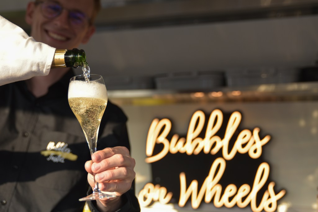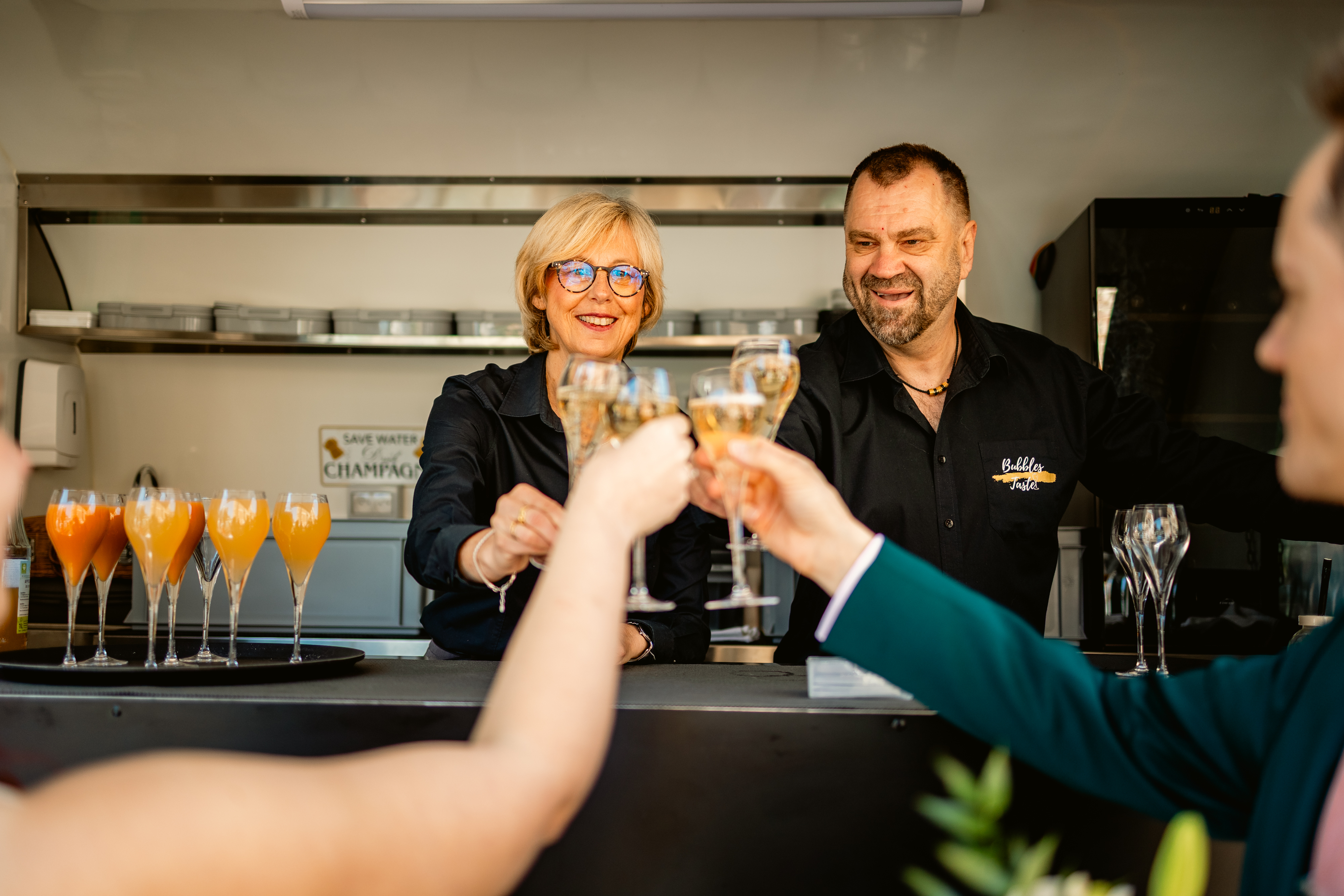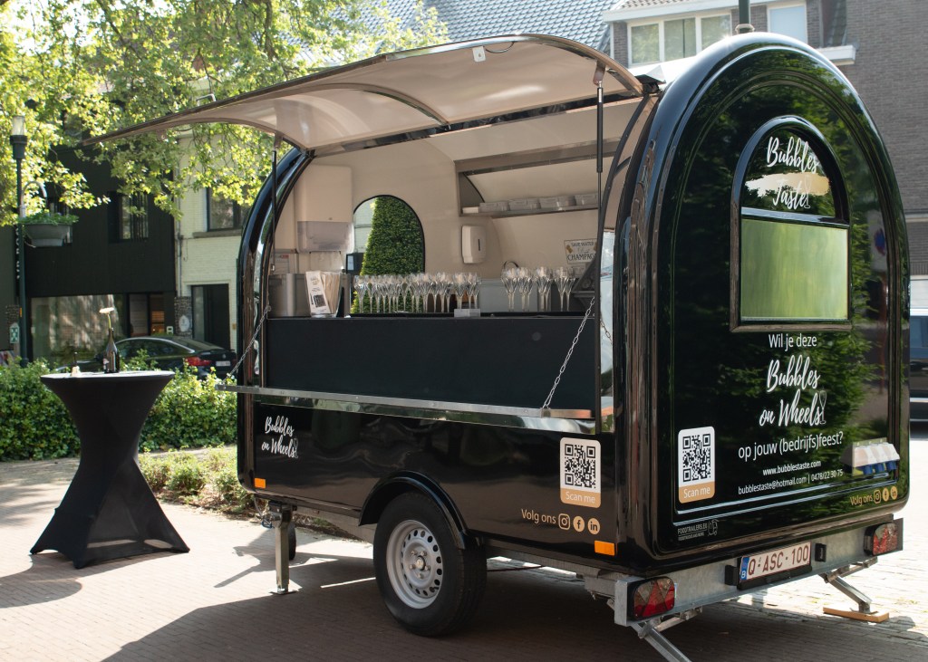 Wil je jouw evenement een unieke uitstraling geven? Onze mobiele champagnetrailer Bubbles on Wheels is dé eyecatcher die elk feest naar een hoger niveau tilt. Stijlvol, luxueus en veelzijdig, perfect voor bruiloften en trouwfeesten, maar ook voor bedrijfsfeesten, opendeurdagen, verjaardagen of jubilea. Onze trailer voegt een elegante en feestelijke sfeer toe aan elke locatie en biedt een complete topservice. Het champagneaanbod kan indien gewenst worden uitgebreid met extra alcoholische dranken, zoals (Belgische) wijnen en bieren, én met kwaliteitsvolle alcoholvrije opties, van exclusieve mocktails en huisgemaakte limonades tot een selectie verfijnde fruitsappen. Zo creëren we samen een sprankelend en onvergetelijk moment, volledig afgestemd op jouw wensen.