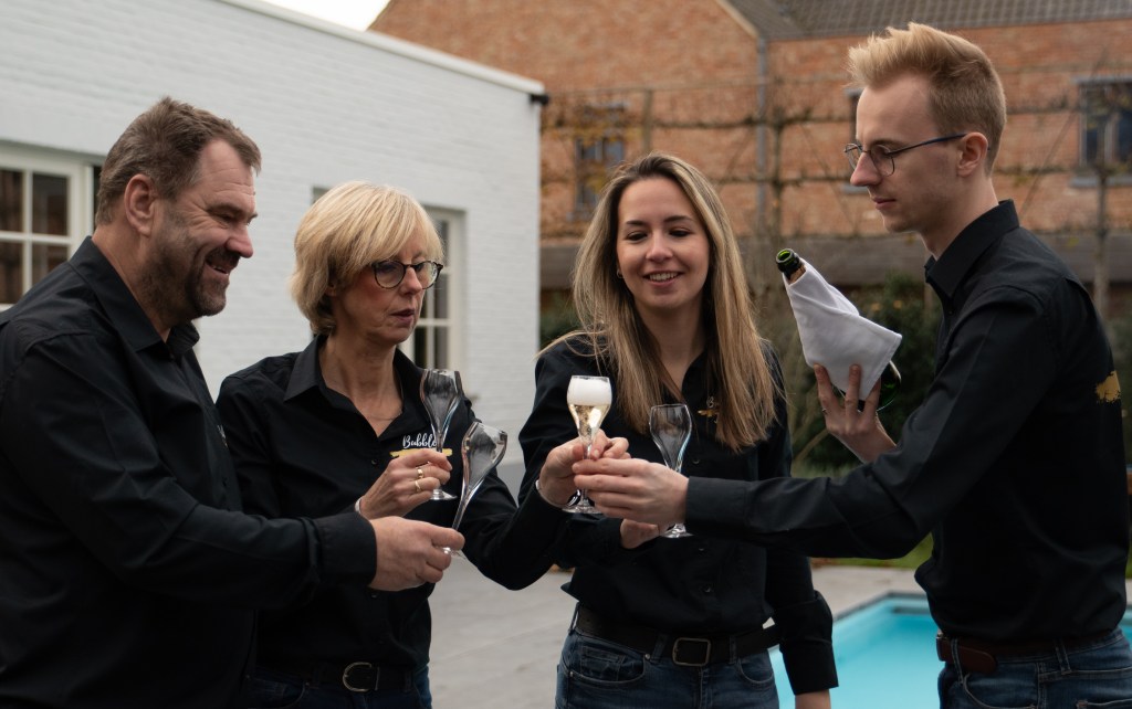 Wij zijn Amber, Michiel, Christel en Freddy, en samen vormen wij Bubbles Taste. Een team van vier gepassioneerde champagne-liefhebbers die de wondere wereld van champagne graag met anderen wil delen. Al vele jaren is champagne de sprankelende meerwaarde in ons leven, maar het echte Bubbles Taste-verhaal begon enkele jaren geleden, tijdens een bezoek aan de Champagnestreek. De kennis en ervaringen die we met onze omgeving deelden, wekten grote nieuwsgierigheid en interesse, wat uiteindelijk leidde tot onze eerste champagneproeverij.